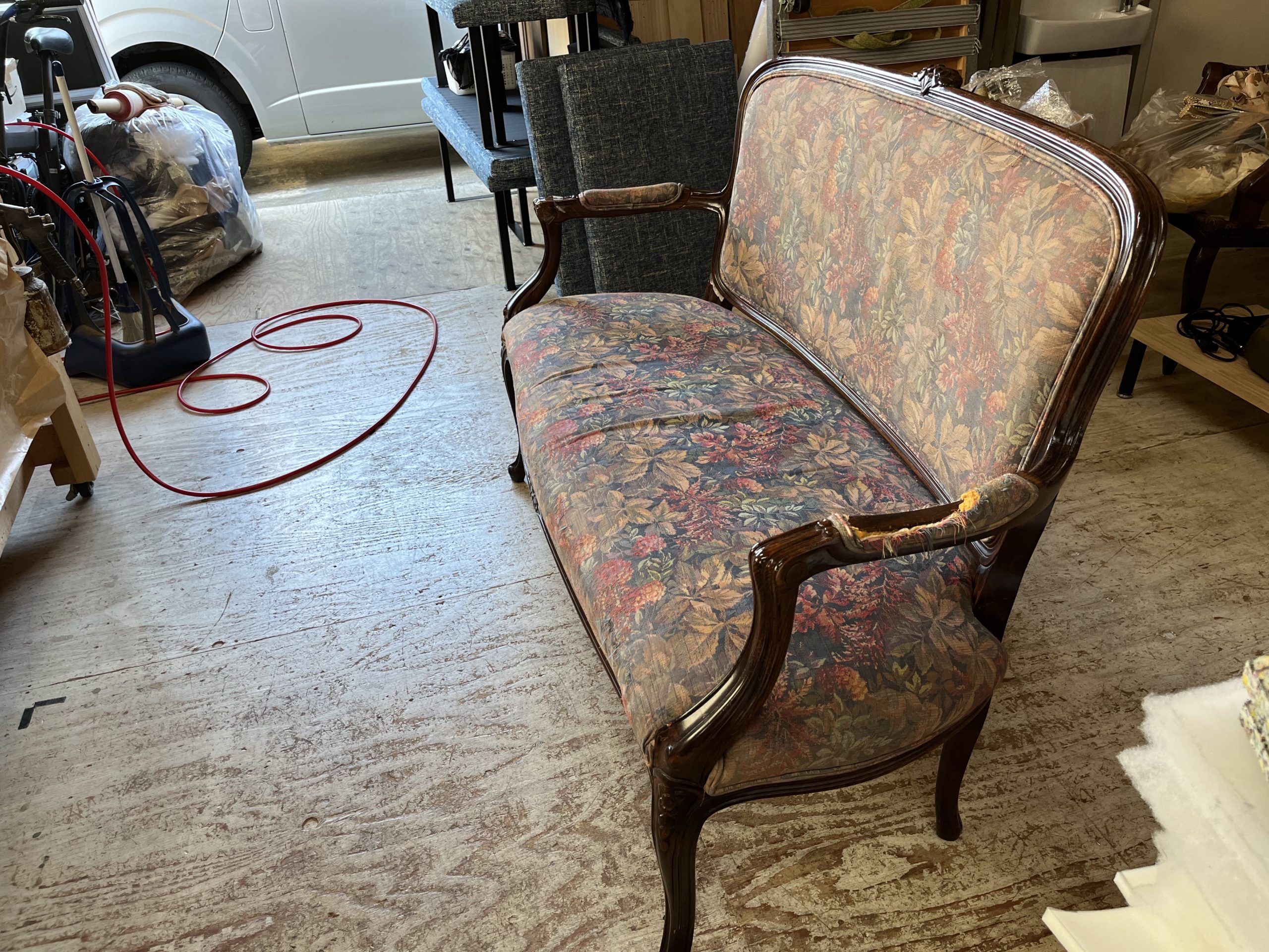・同じ生地で別の1人掛けいすの張り替えも行いました。
